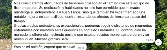 También dispongo de un servicio especial de fisioterapia y rehabilitación a domicilio para mayores que quieran recuperar movilidad, fuerza, confianza y calidad de vida desde la seguridad de su hogar.*
